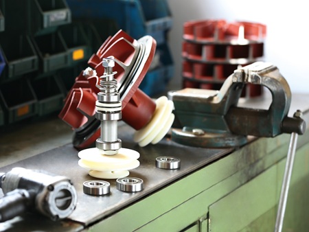 Die rotierende Stahltrommel besitzt eine Edelstahlachse, die in einem flankierend angebrachten LFD-Stehlagern endet. An dieser Stelle lagert das Gewicht der schweren Stahltrommel und genau dort werden die hohen Zugkräfte beim Einzug der am Boden reibenden Rohre aufgefangen. Auf Robustheit ausgelegt sind auch die Dreifach-Rollenführungen des Spulwagens, weil beim Aufspulen des Rohres enorme Seitenkräfte entstehen. Es muss über die gesamte Breite der Trommel exakt aufgewickelt werden, was extrem schwierig ist, wenn es seitlich in der Fahrspur abgelegt wurde. In der Buchse des Spulwagens sind Rillenkugellager von LFD verbaut. Sie unterstützen die Funktion des Führungsbolzens, der der Nut der Spindelwelle folgt. Die Spindelwelle wiederum ist beidseitig mit funktionsgenau angepassten LFD-Flanschlagern gelagert, damit ein störungsfreier Betrieb gewährleistet ist.
