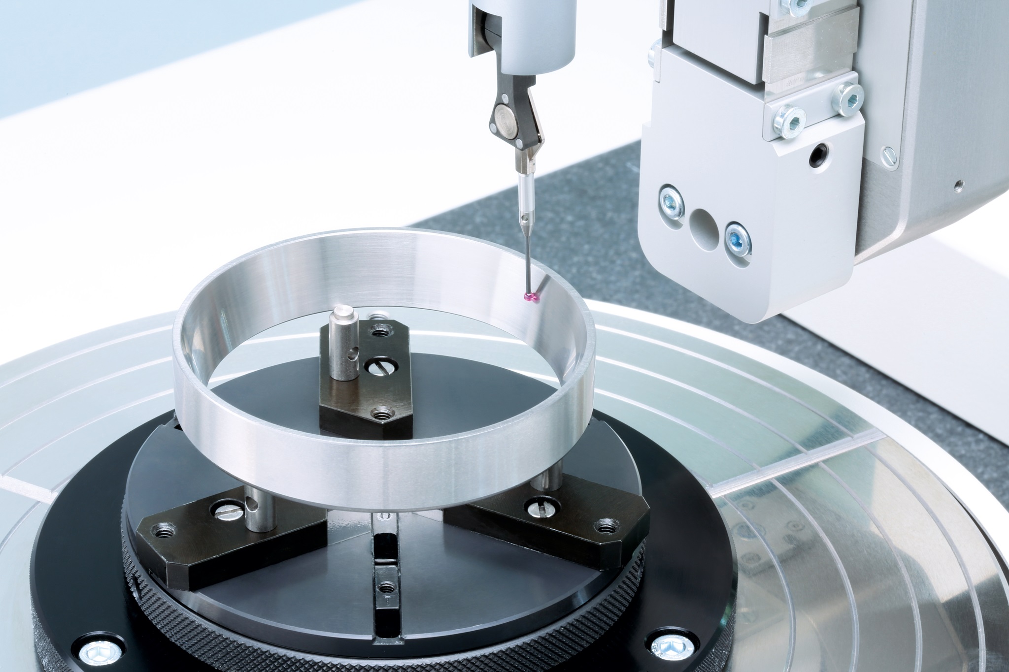 Mehrere JENOPTIC Hommel Etamic F 435 Messplätze verfügen über einen luftgelagerten Drehtisch. Sie bieten eine vollautomatische Werkstückausrichtung und minimale Messzeiten bei maximalem Bedienkomfort. Die für Wälzlager wichtigen Form- und Lagertoleranzen werden über präzise in Radial- und Axialrichtung geführten Messachsen überprüft.