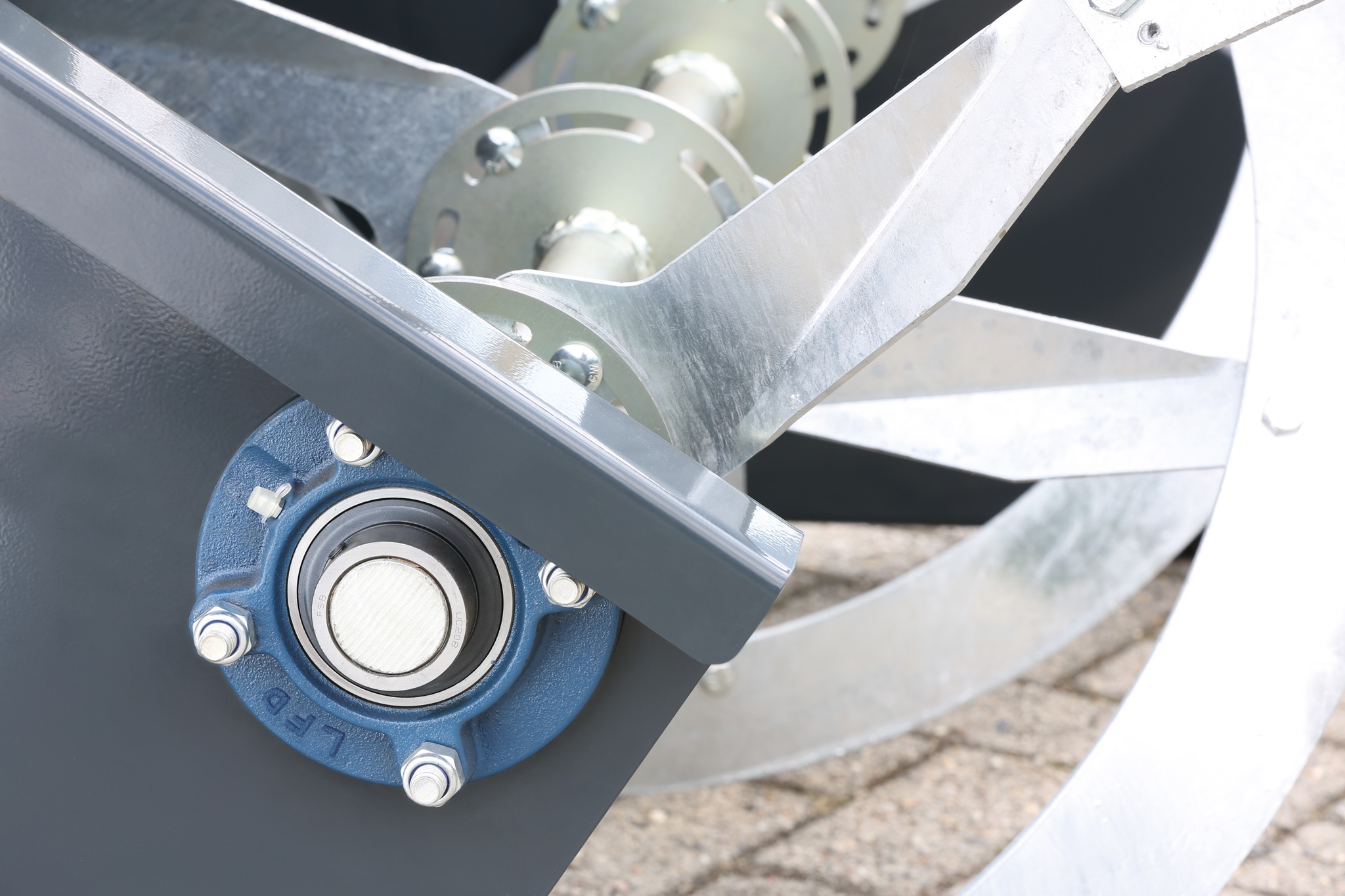 Ihr ganzes Potential entfalten müssen auch die verschiedenen Gehäuselager, in denen Achsen und Wellen laufen. WESTERMANN verwendet Gehäuselager, im Speziellen sowohl Stehlager als auch Flanschlagergehäuse aus Guss und bei leichten Maschinen auch Flanschlager aus Stahlblech von LFD.
