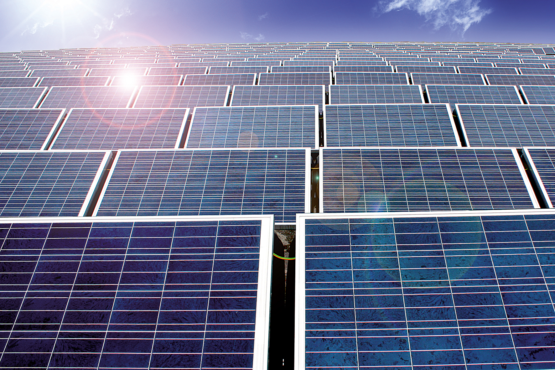 Gelenklager unterstützen in nachgeführten Photovoltaikanlagen die Ausrichtung nach dem Sonnenstand.